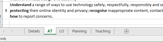 This Excel spreadsheet has been completed to show an example analysis of the Computing Subject Content.